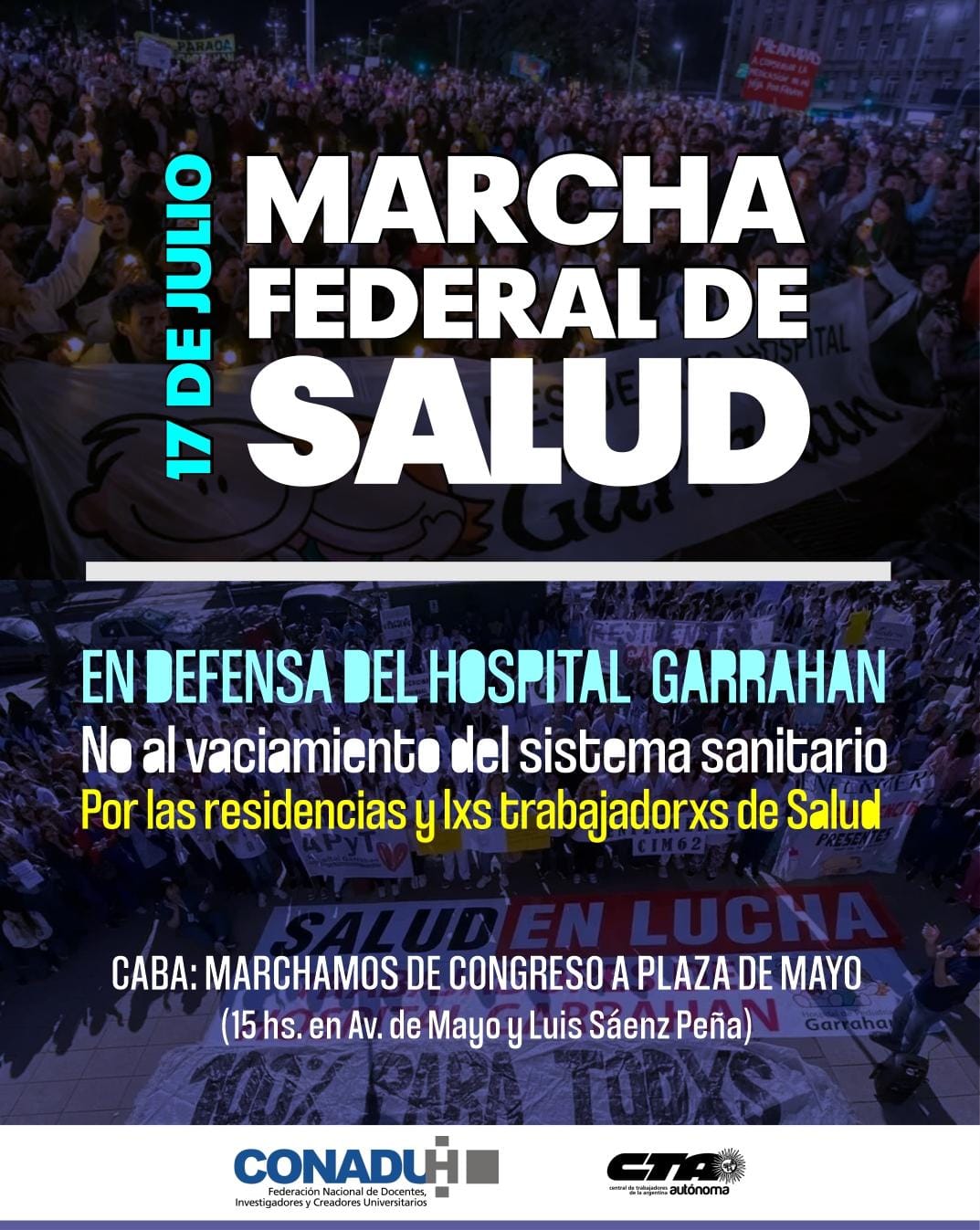 Este jueves 17 de julio marchamos en unidad por el derecho a una salud digna.