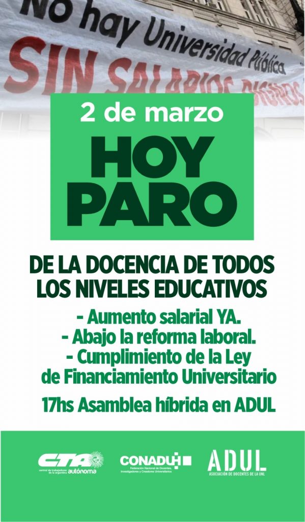 Concentramos con toda la docencia frente a la legislatura provincial a las 10 horas.