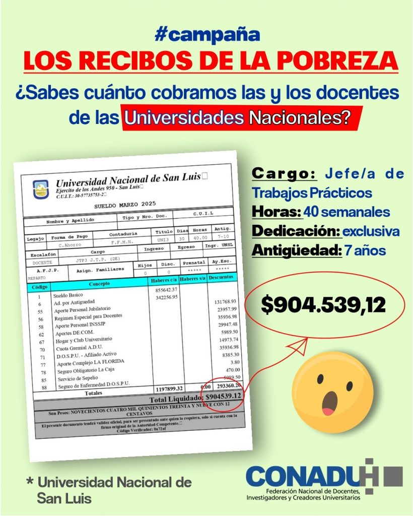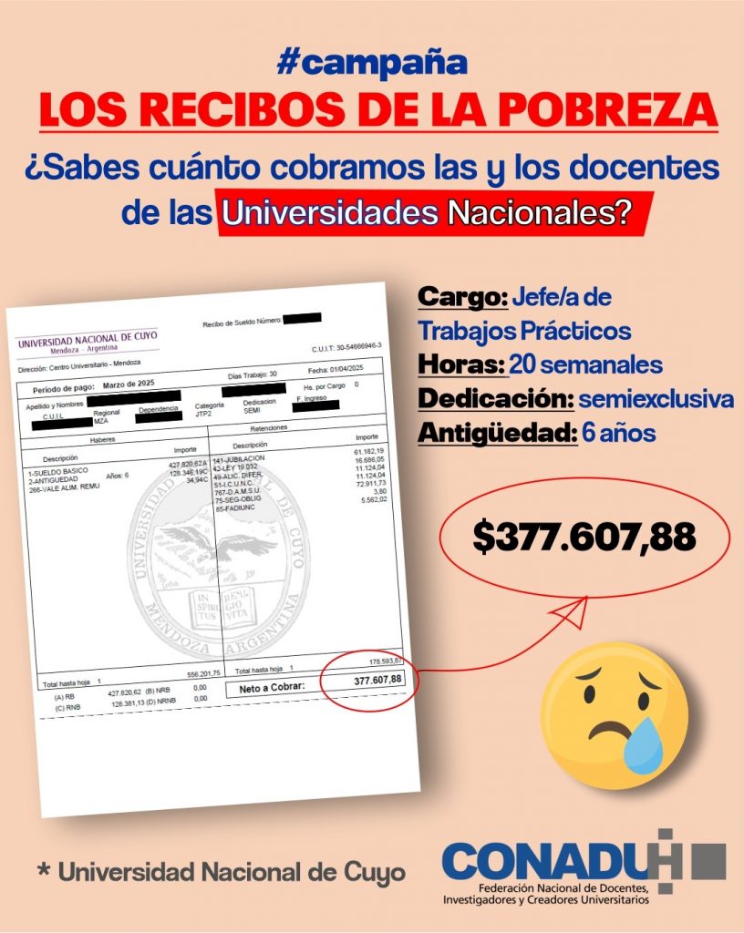 ¿Sabés cuánto cobramos las y los docentes de las Universidades Nacionales?