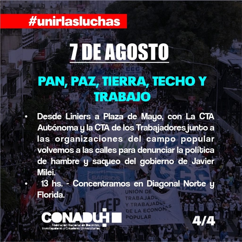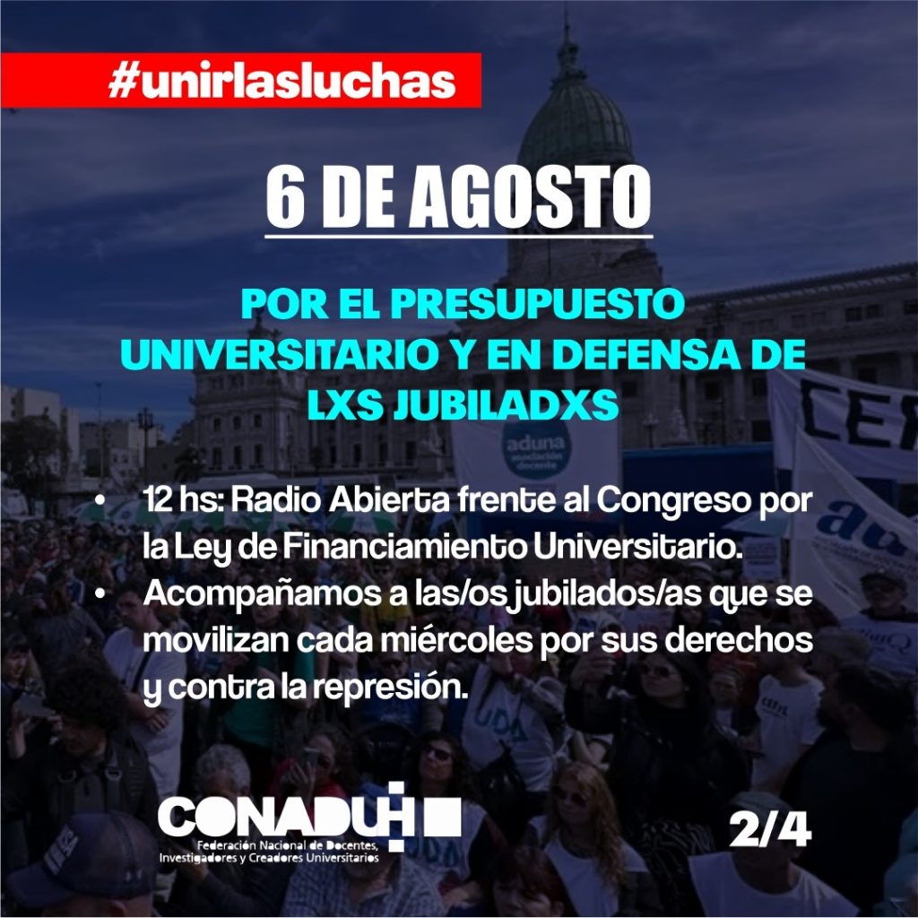 La docencia de las Universidades confluye con los reclamos del conjunto de la clase trabajadora antes los ataques del gobierno de Milei. Con los jubilados, las personas con discapacidad, las y los científicos y las y los trabajadores de la Economía Popular en las calles para frenar esta política de ajuste, hambre, destrucción de lo público y entrega de la soberanía.